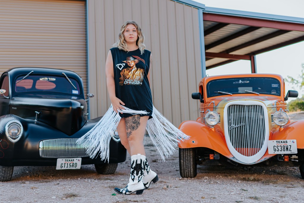 Fringe is a classic cowboy look that’s still in action. You can find fringe on everything from jackets and vests to dresses and skirts. For a subtle fringe look, try a pair of denim shorts with a fringed hem. Or, go bold with a fringed leather jacket or dress. A timeless pair is taking a fringe embellished button up, tied up and paired with a satin slip dress. Any color dress will do. You can also go with a one of a kind fringe tshirt dress too! Mandee Ashley Designs is the perfect designer for such dress!